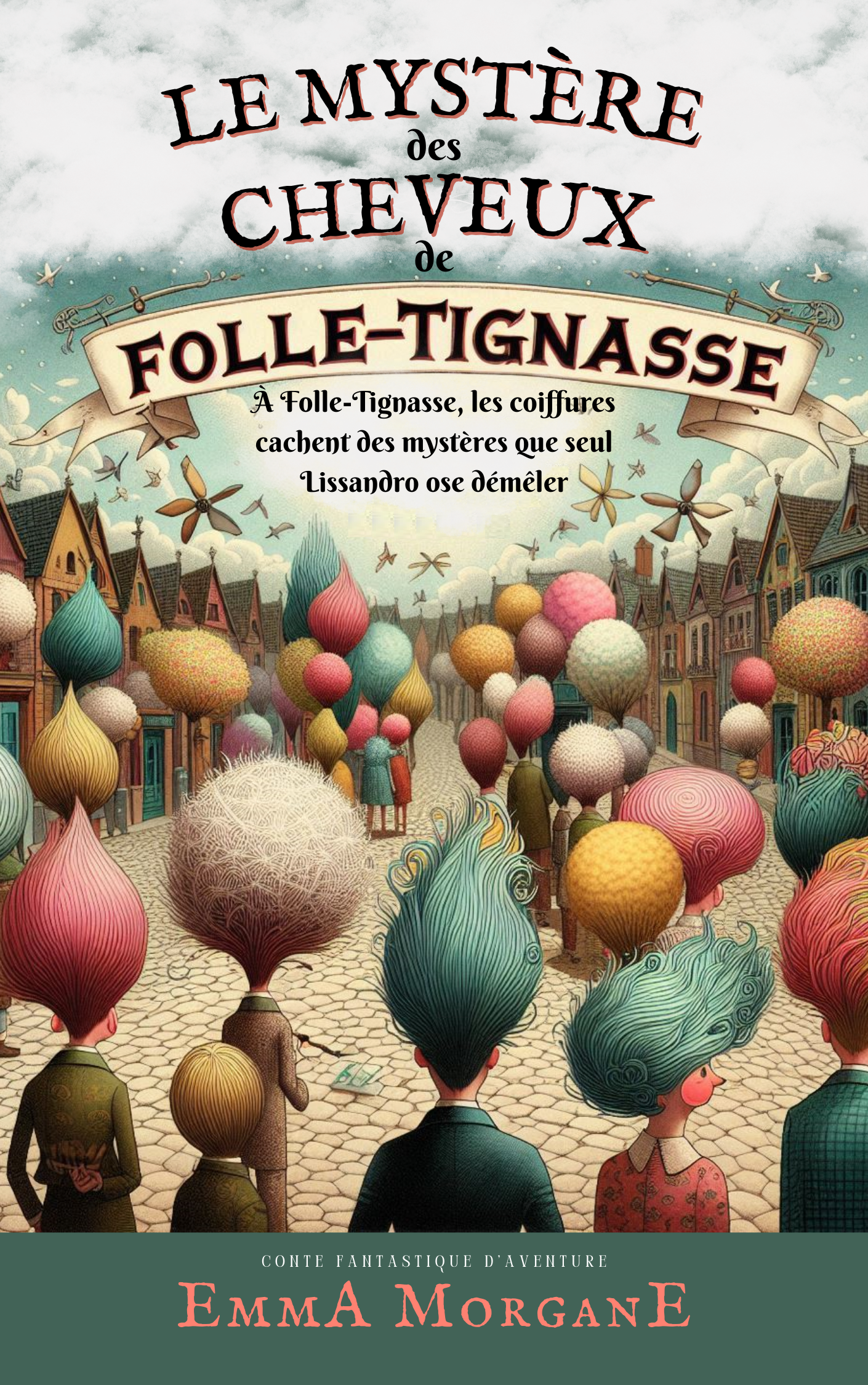Dans la ville fantastique de Folle-Tignasse, chaque tête est une surprise : cheveux en forme de moulins à vent, nids d’oiseaux, ou même cascades d’eau. Ces coiffures extraordinaires, bien qu’amusantes, intriguent et inquiètent les habitants. Personne n’a jamais compris pourquoi les cheveux des Fol-Tigneux défient ainsi la logique…